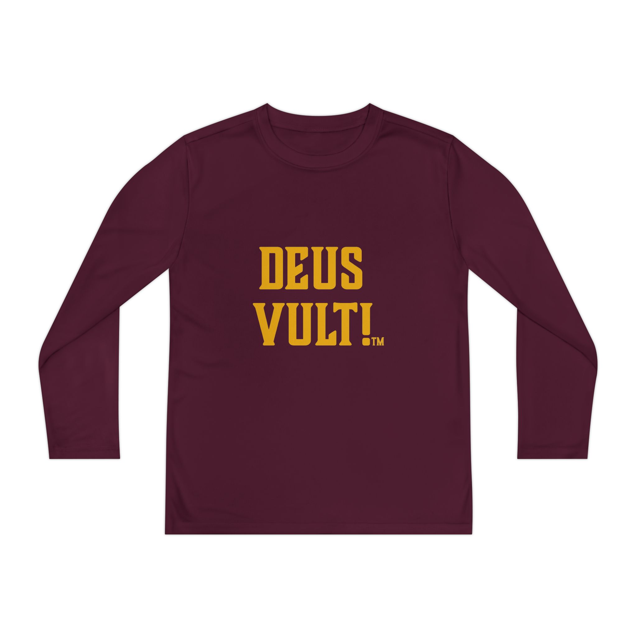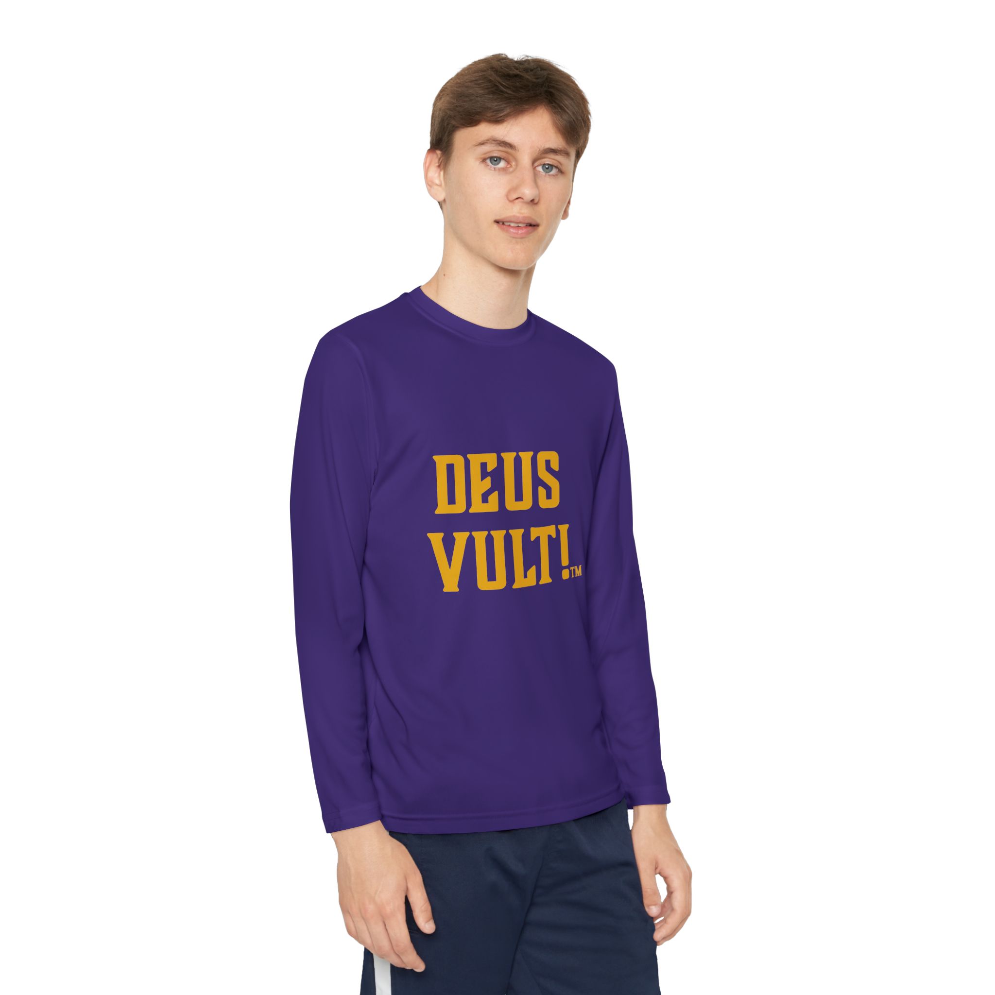 Lightweight, athletic long sleeve made to move with kids who play hard and stand for something. The breathable, moisture-wicking polyester keeps skin dry during practice, games, or a long afternoon outdoors. Clean, bold lettering across the chest and a small back graphic give this shirt attitude without weighing them down. The athletic cut and tear-away label keep them comfortable whether they’re layering it under gear or wearing it alone on a cool day.